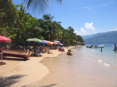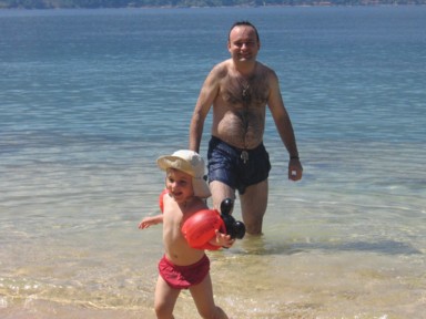 Frente a nuestra posada en la Playa de Arapo, tenemos a la vista la excursión mas popular de la zona para un día de playa, se trata de la Isla de Arapo. Tomamos un peñero en nuestra misma posada (foto 1), y en poco mas de 5 minutos nos encontramos en una paradisíaca playa (fotos 2 y 3). La zona de playa no es muy grande, pero como no esta abarrotada, pues es suficiente. Posee servicios de restaurante y bebidas, por lo que no os faltara de nada. Nosotros además contamos con nuestro amigo Ramón que ha venido desde Barcelona a visitarnos y realizara este viaje con nosotros. En seguida Ana Sofía y el se han hecho panas, lo cual no es difícil, si la consiente en todo y a todas horas (foto 4). Gracias Ramón...