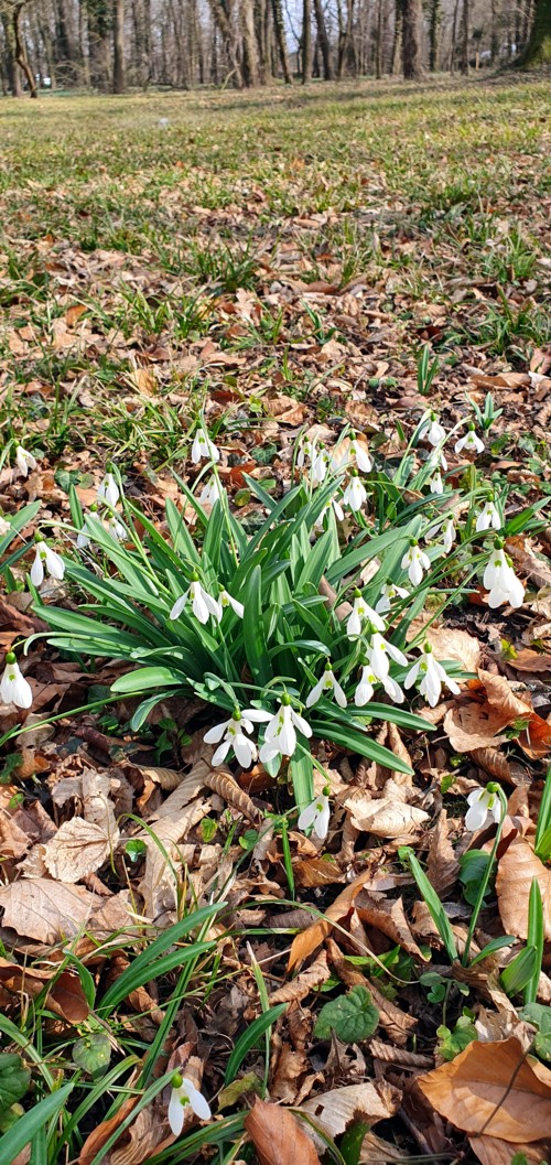 las fantásticas "gotas de nieve" (Snowdrops). Un campo de flores blancas como la nieve, que ofrece una vista maravillosa y se extiende