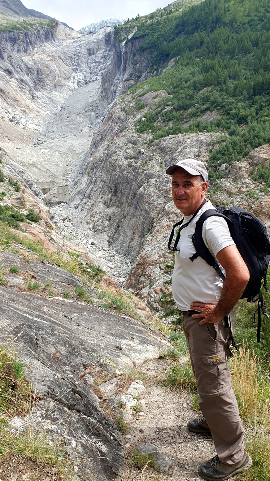 por el sendero que una vez condujo al Chalet de Lognan cruzando el glaciar Argentière.