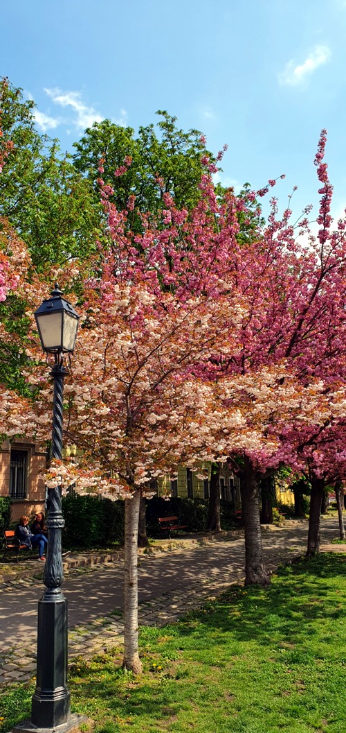 entonces es el lugar de paseo favorito de los ciudadanos de Budapest cuando florece el cerezo, que es cuando se pone simplemente