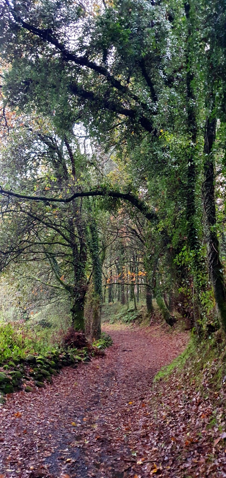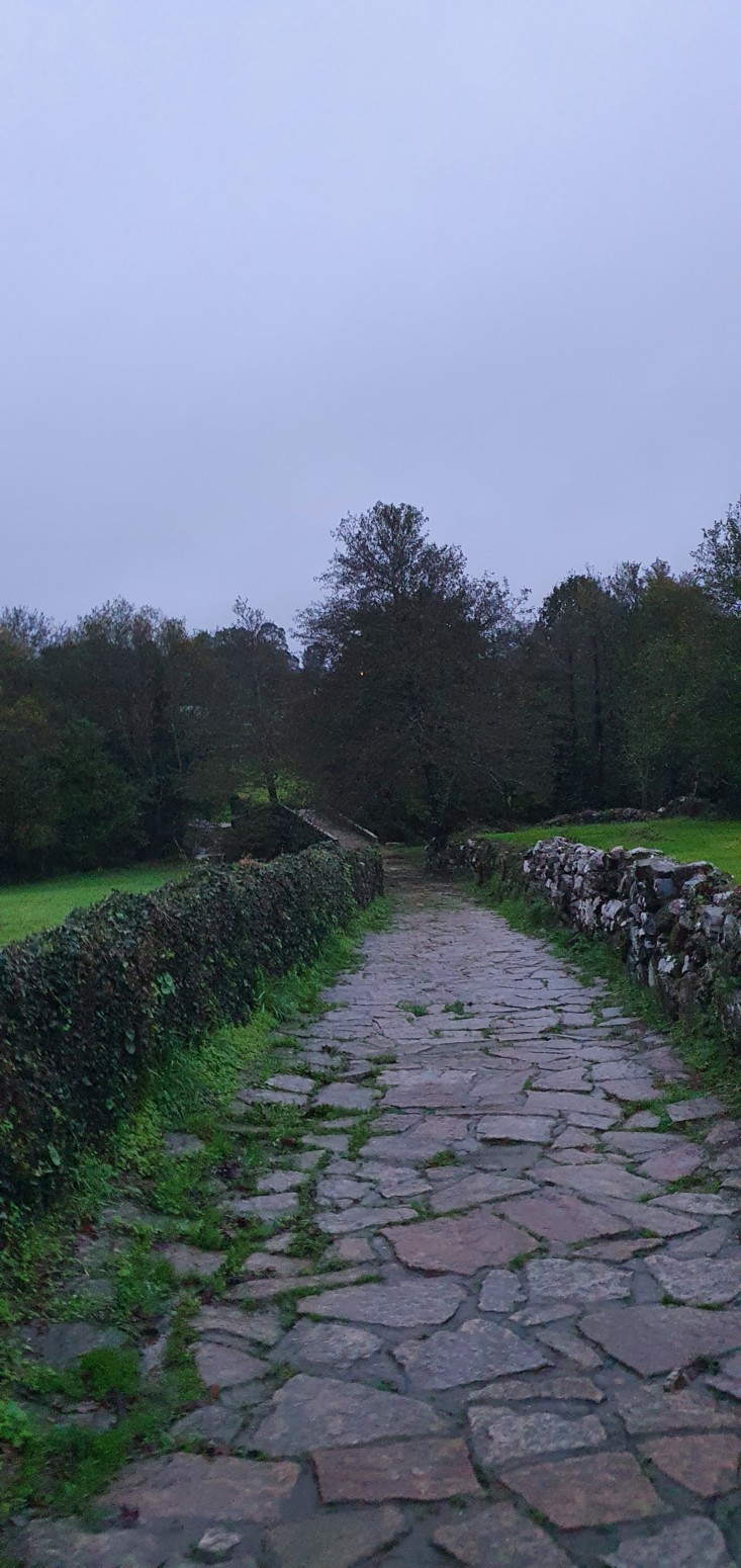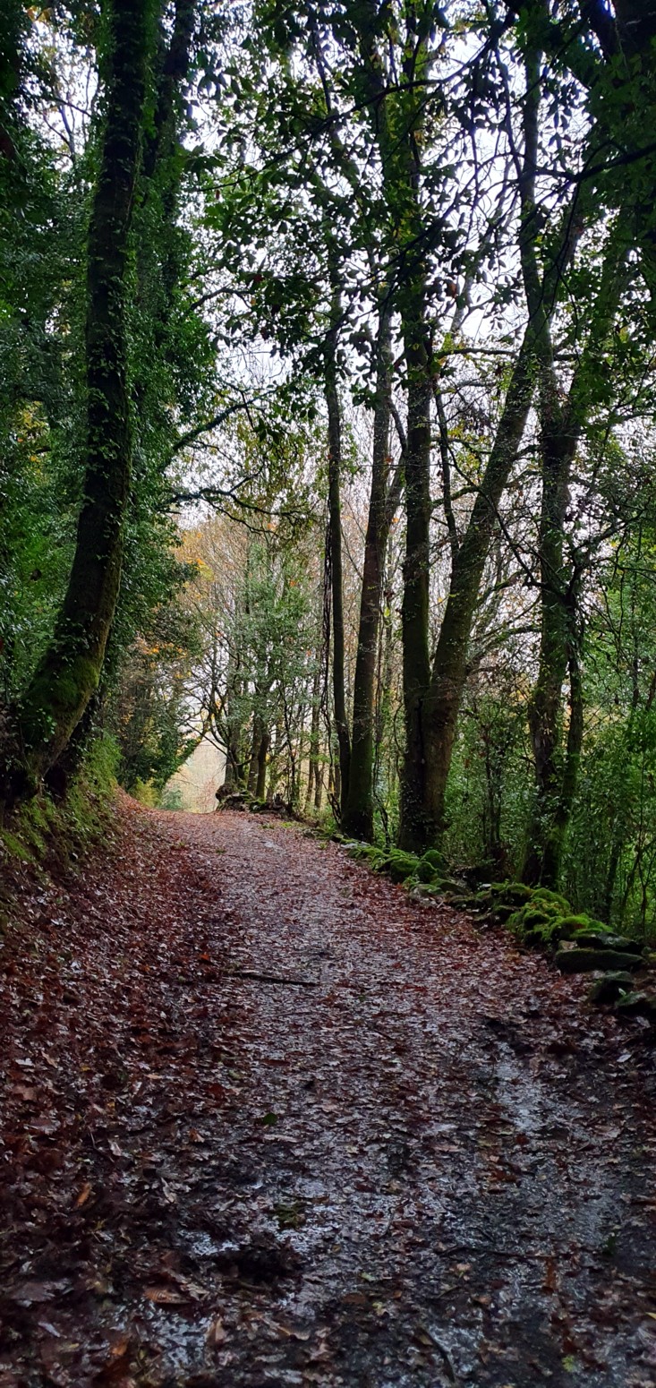 Es una etapa muy bonita y entretenida continuando por caminos rurales de naturaleza verde y casi siempre como de costumbre bajo la lluvia.