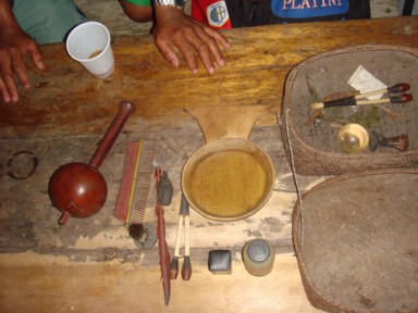El ritual se inició mostrándonos los utensilios que utilizaría (foto 2), todos