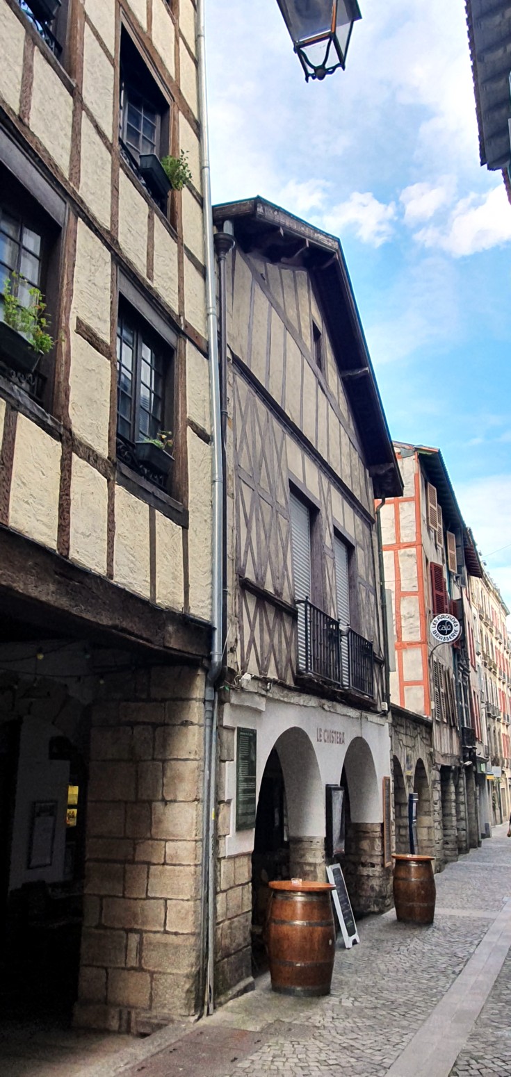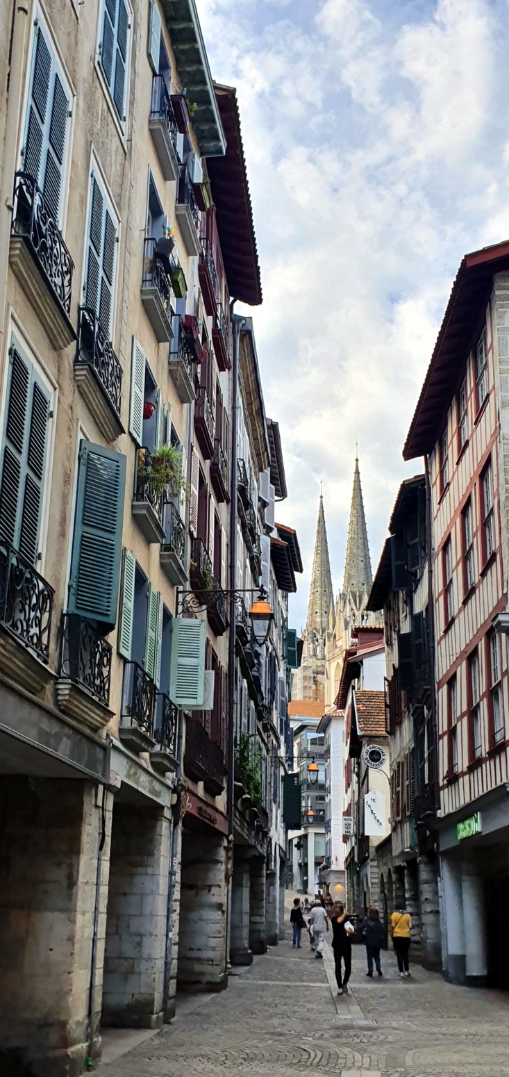 El centro histórico de Bayona es un entramado de calles que nos enamoran con sus vigas de colores, sus contraventanas de madera y su arquitectura popular