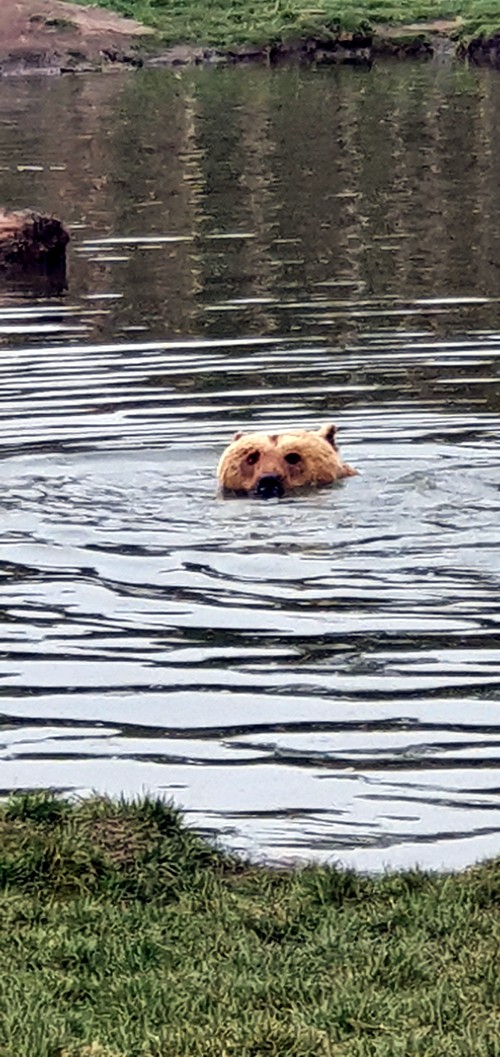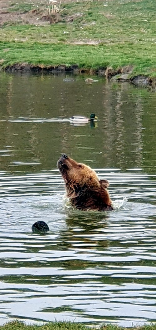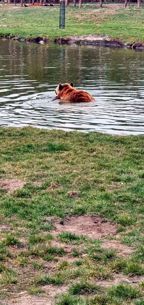 Yo disfrute mucho viendo como un oso no solo se bañaba, sino que realmente nadaba de lado a lado de su lago particular.