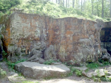 3 kilómetros, hasta un bosque de esculturas talladas en las rocas en un lugar