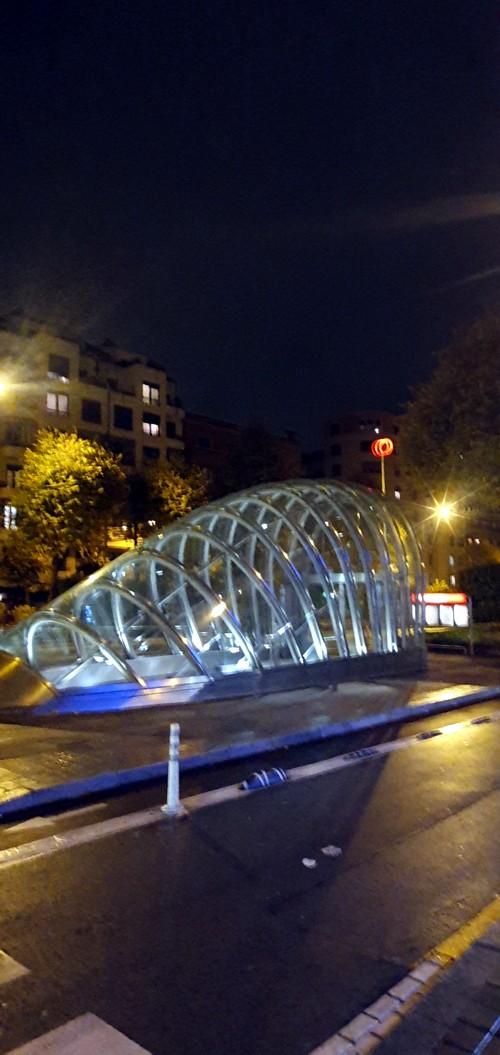 Llego a Bilbao de noche, por lo tanto mis primeras fotos de la ciudad son nocturnas, las innovadoras entradas al metro creadas