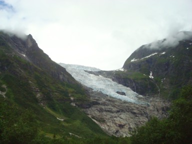 gran Jostedalsbreen cayendo hacia los valles. Tal vez la más conocida por