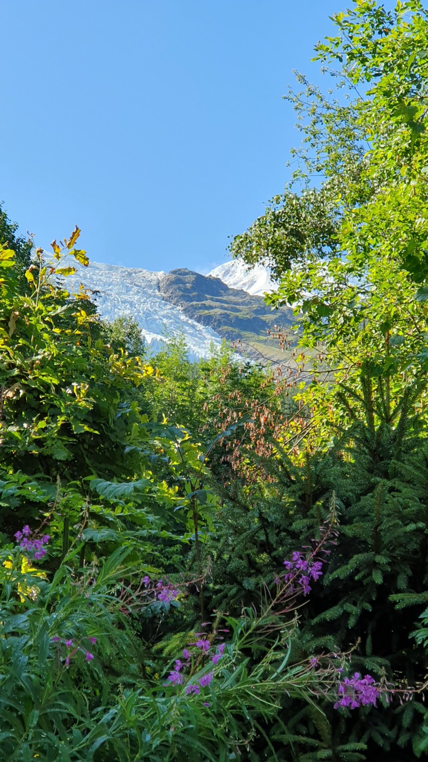 El glaciar se aprecia perfectamente desde Chamonix, y desde el pueblecito de Les Bossons, hay un pequeño telesilla que