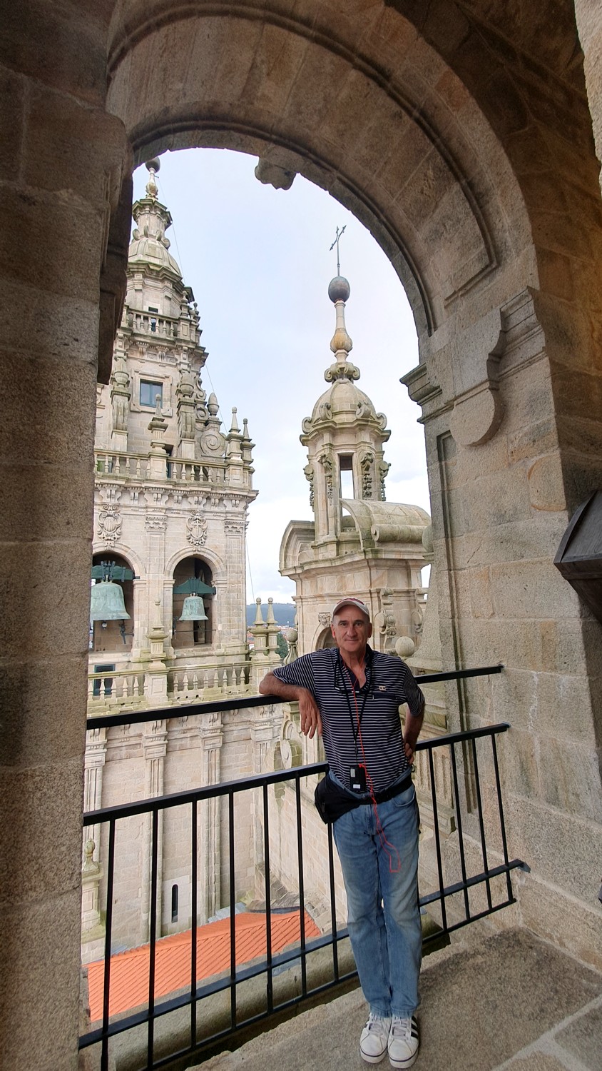 asomarnos a el mirador de la torre a mas de 50 metros de altura sobre la Plaza del Obradoiro.