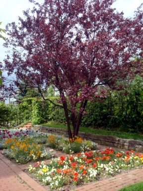 Con muchas zonas de flores y árboles diversos, muchos caminos para pasear,