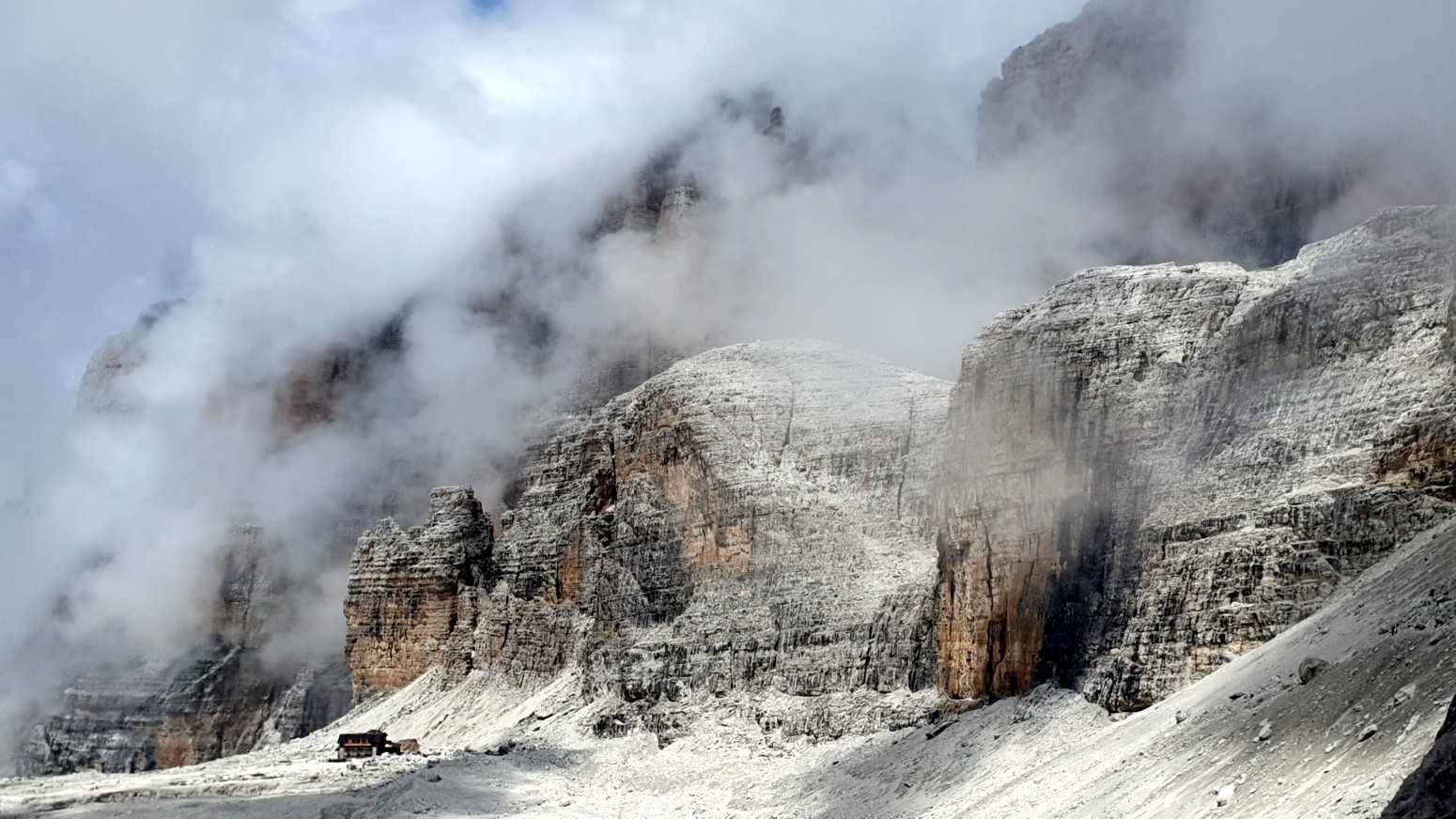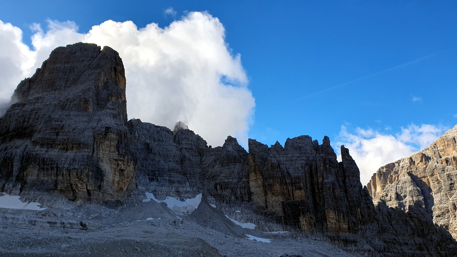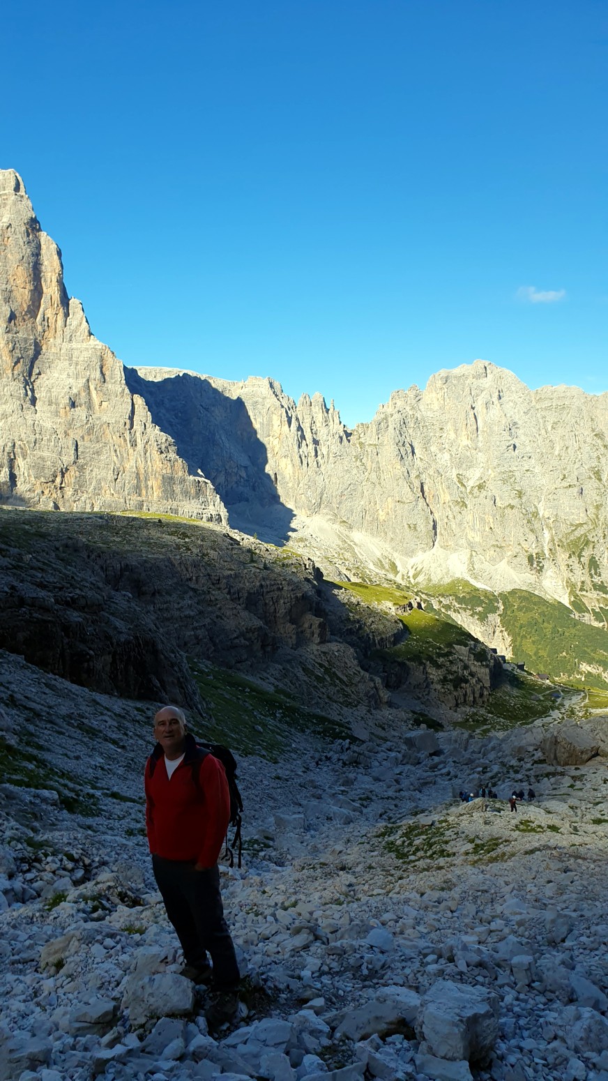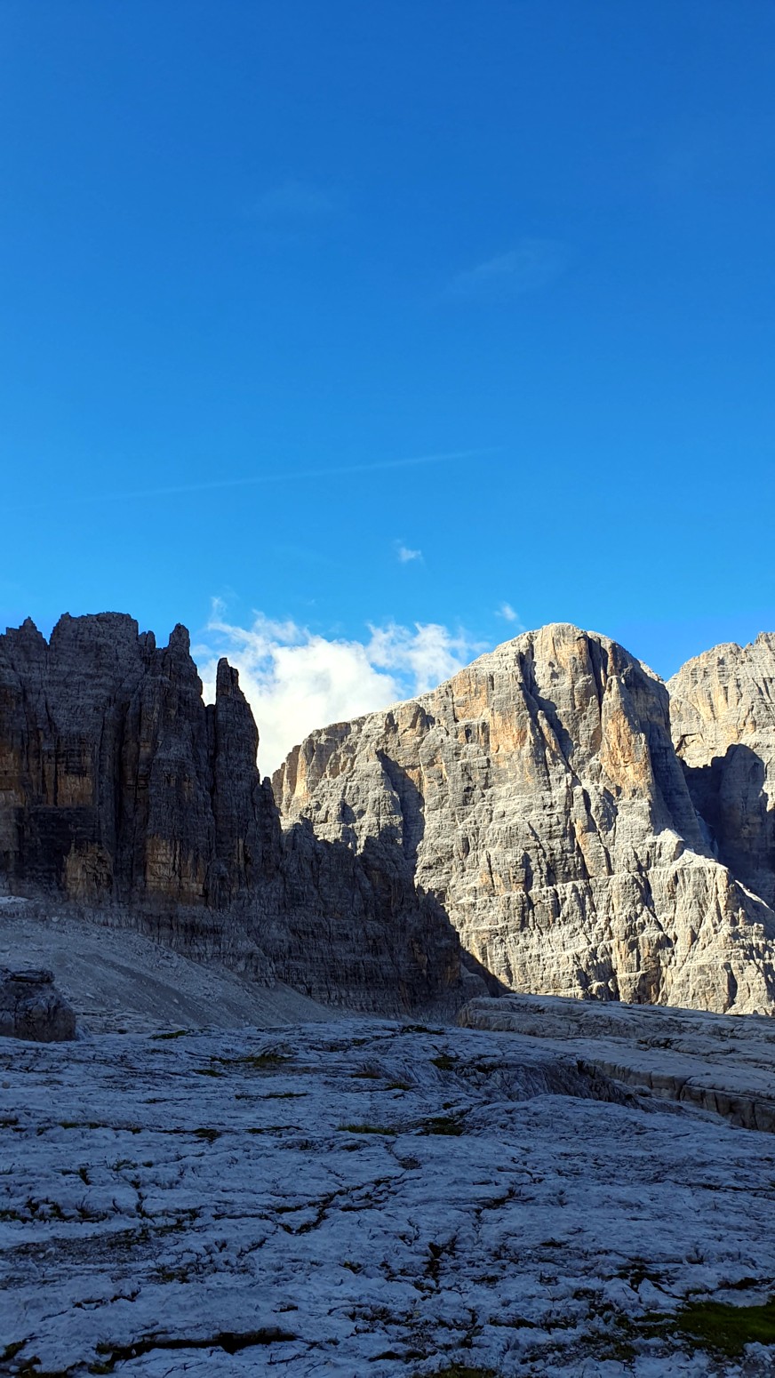 El itinerario se puede hacer en el sentido de las agujas del reloj desde Rifugio Alimonta a Bocca di Brenta, o en sentido contrario a las agujas
