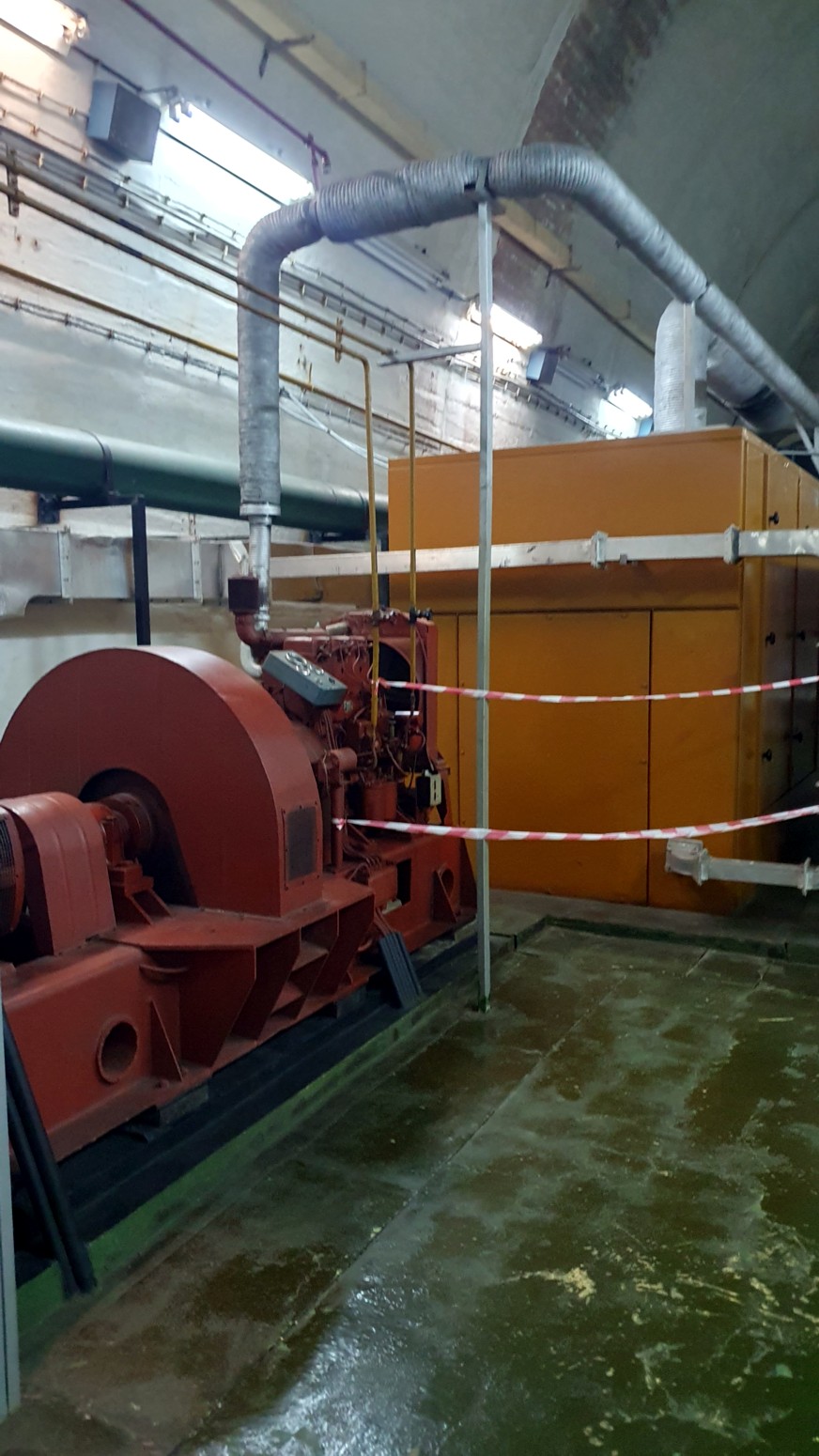 acceso subterráneo al agua del río, tres centrales eléctricas con sus respectivos depósitos de combustible, salas de