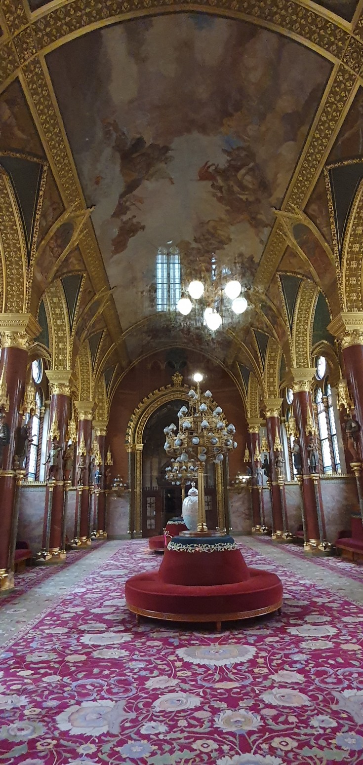 húngaro, su corona real en el Parlamento que este día se puede visitar