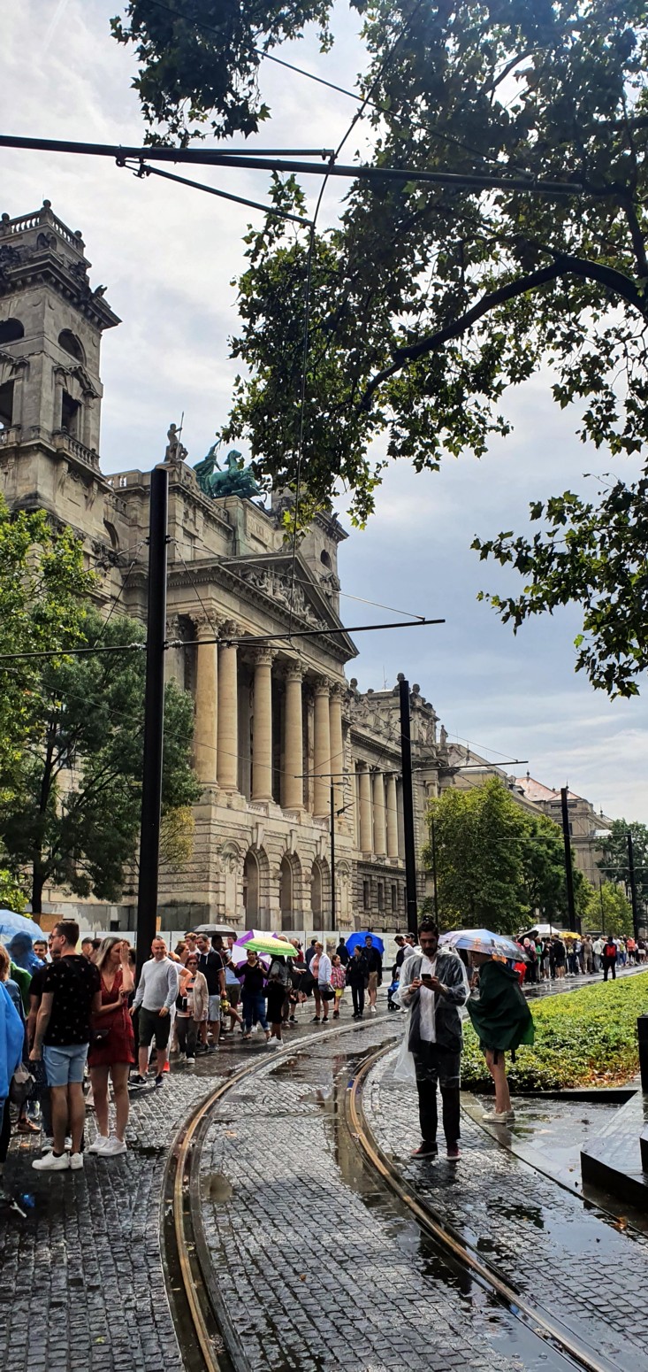 gratuitamente. A pesar de la intensa lluvia nadie se movía de la larga cola, y nosotros