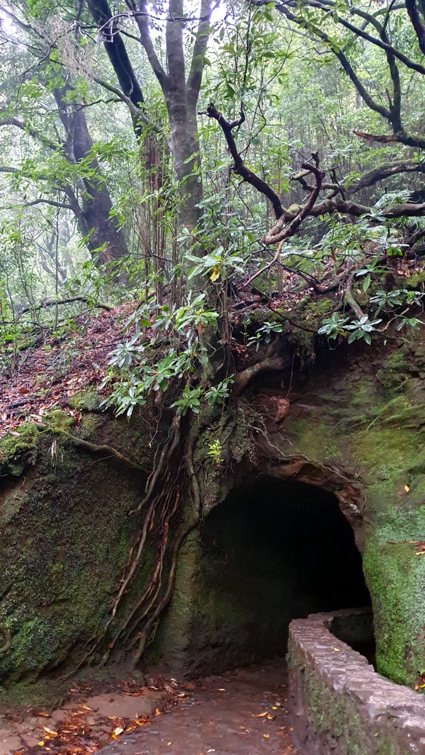 de un bosque de laurisilva, donde el agua abundante se dirige a través de esta levada ya histórica, construida en el siglo XVIII, a las tierras