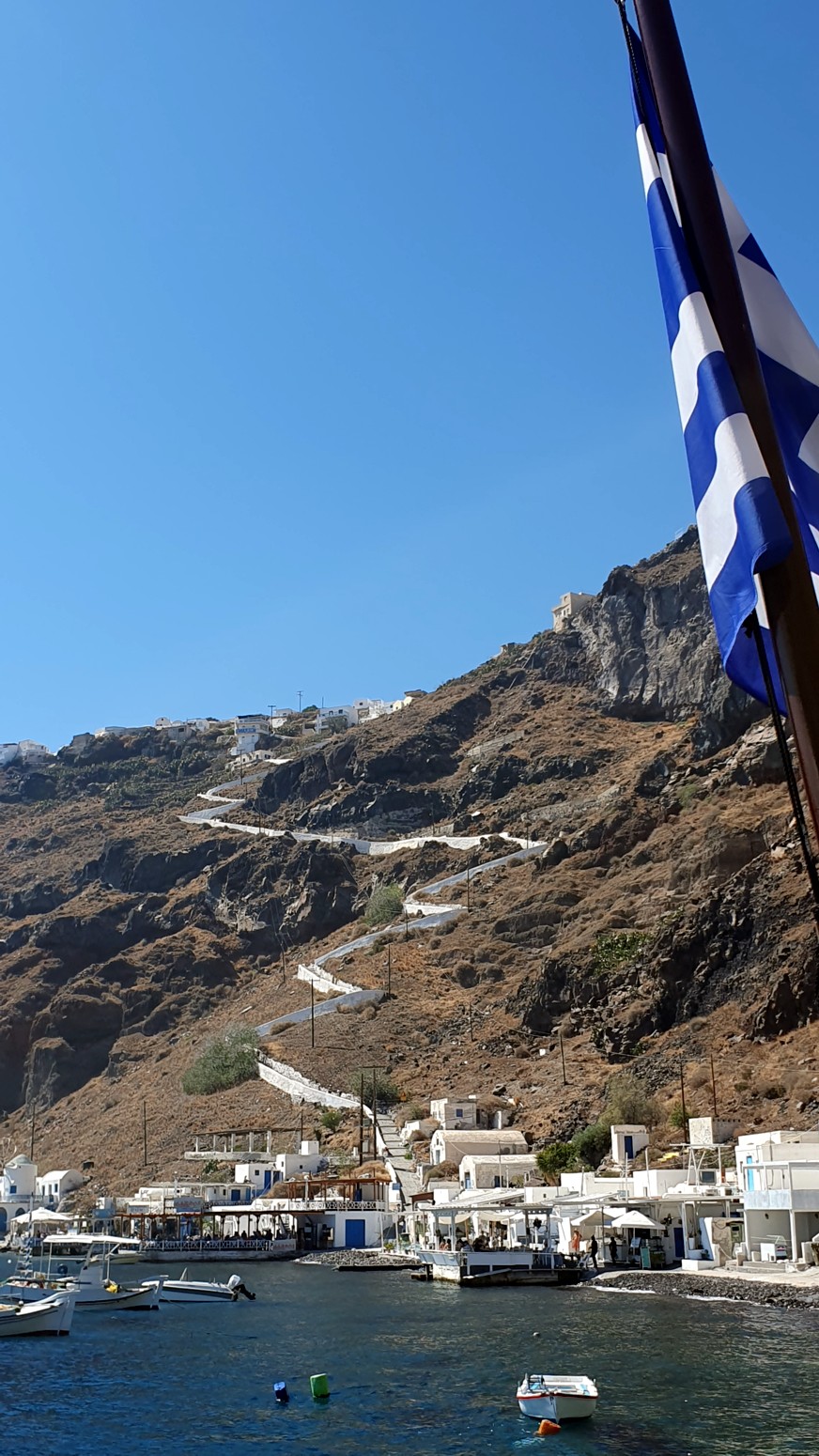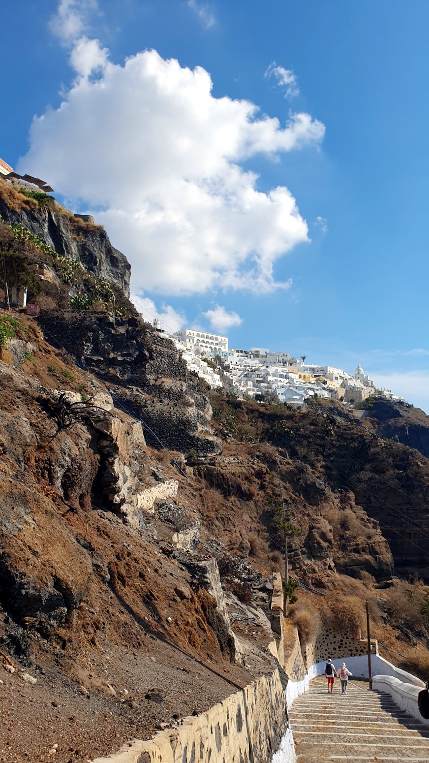 Embarcarse en Fira da la opción de bajar las famosas escaleras de Karavolades desde la