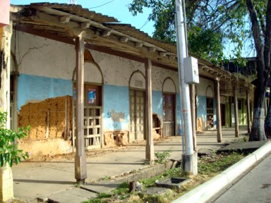 la calle principal de la localidad tiene casas antiguas vacías que se caen de