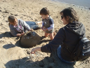 castillitos en la arena (foto 12), hasta que nos entra hambre, y bocadillo de