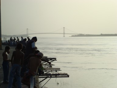 5), y cruzando la calle, el gran río, también con su bullicio, barcas,