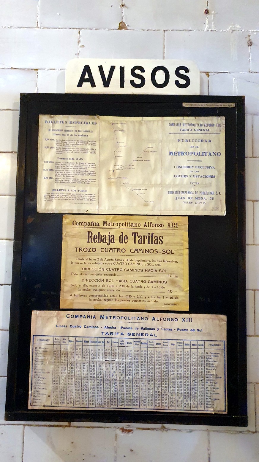 Se han restaurado integralmente los muros, bóvedas y carteles publicitarios, así como el mobiliario y los andenes originales. Puedes