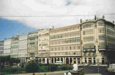El centro de la ciudad, es la Plaza María Pita, rodeada de edificios porticados,