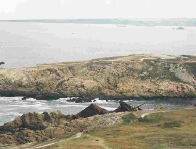 una estrecha lengua de tierra, y ambos lados de una pequenia península. Es un