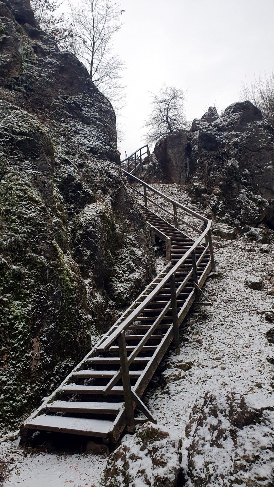 Se puede llegar a la parte inferior de la mina por escaleras de madera, luego se puede