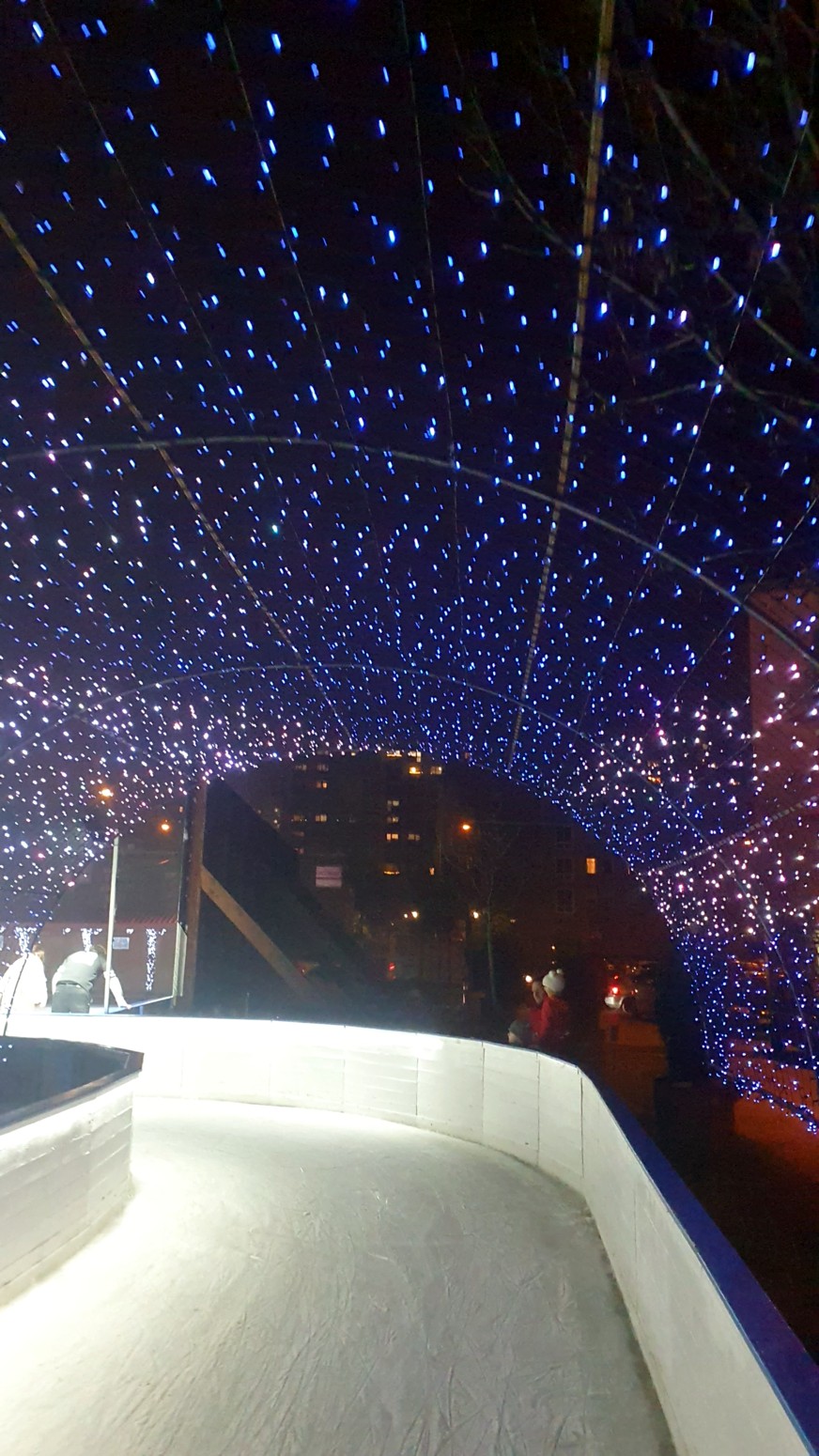 Esta pista de patinaje navideño de Csepel este año se ha superado creando conexiones para patinar en dos niveles y hay