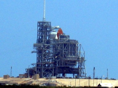 estaba colocado en posición de despegue el transbordador Atlantis que sería