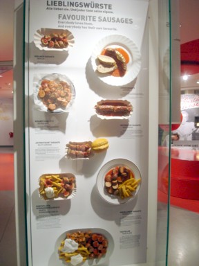 Diversos paneles que nos hablan de la historia de las salchichas o de las
