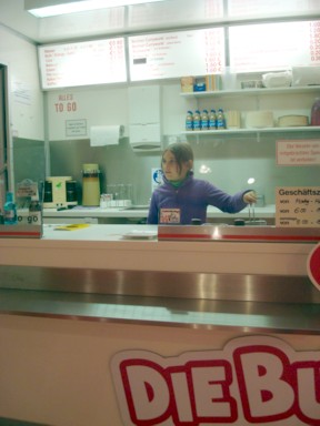 en caso de tener hambre en Alemania, con una salchicha y un "cacho" de pan