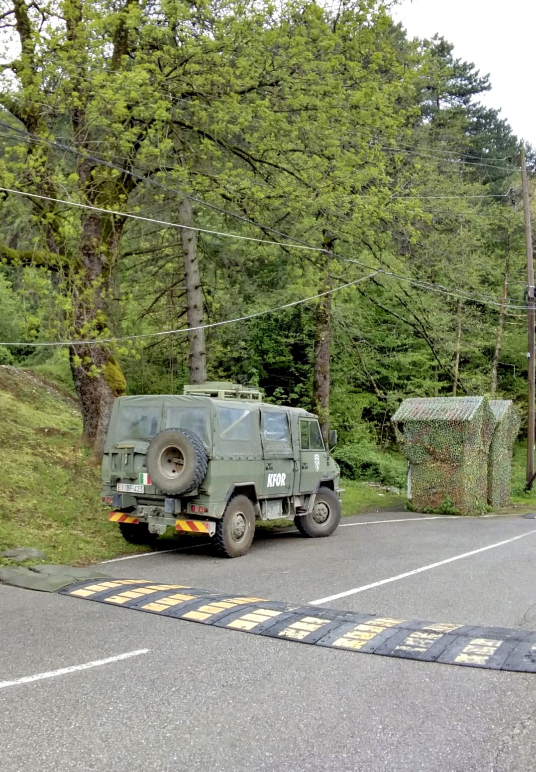 También esta custodiado fuertemente por soldados de la KFOR de Naciones Unidas con tanquetas y
