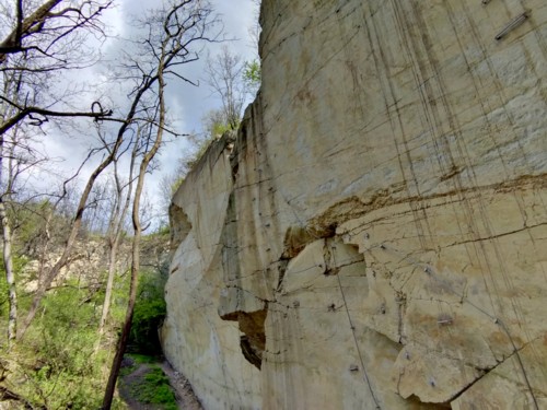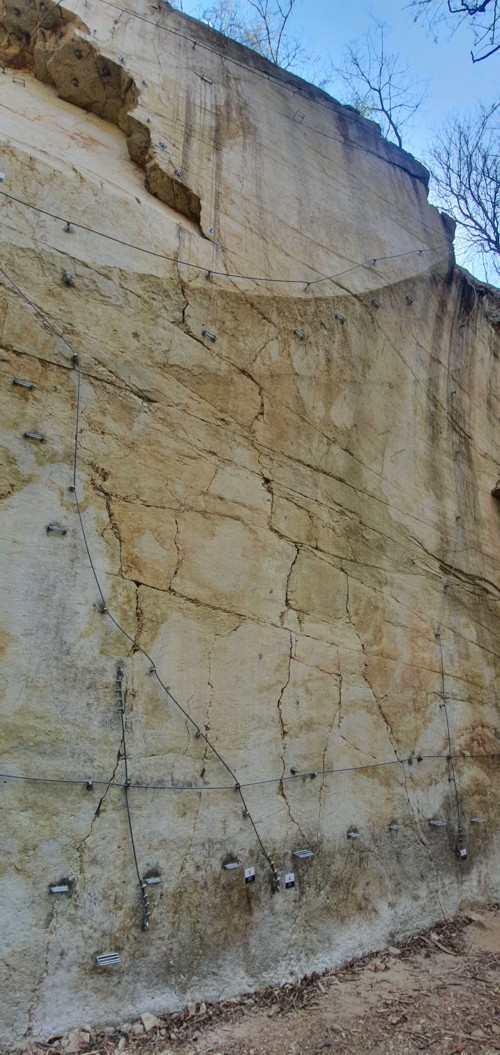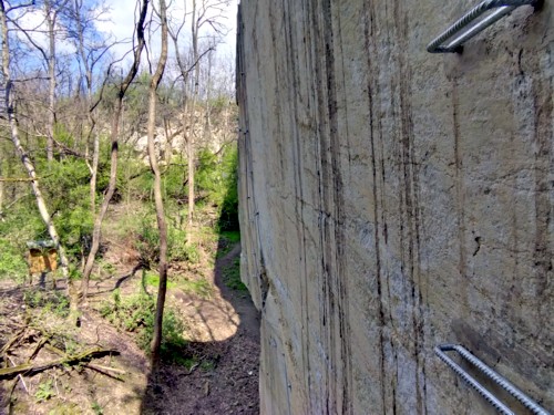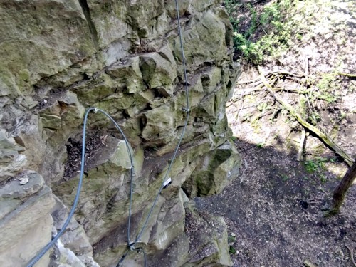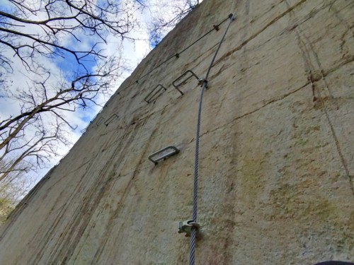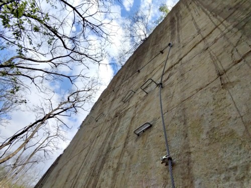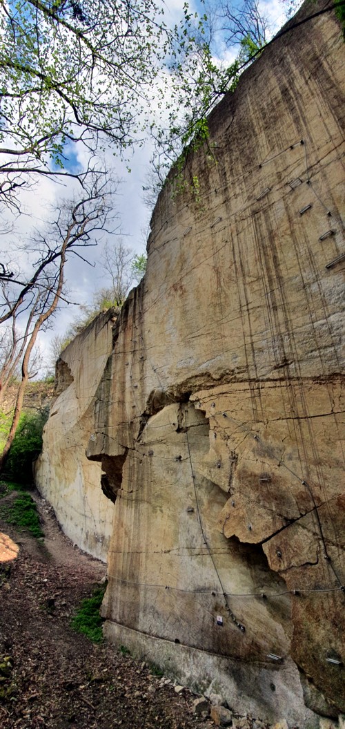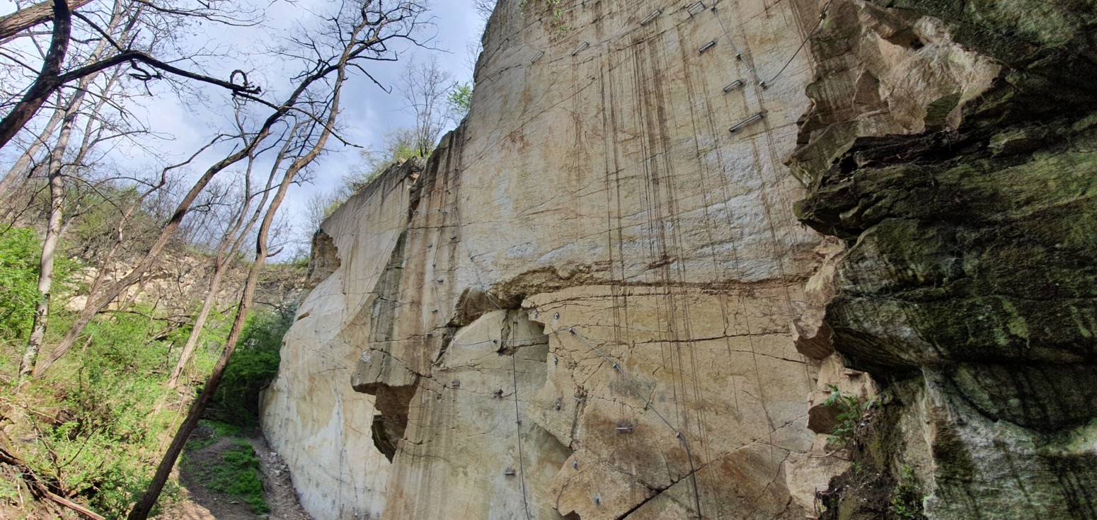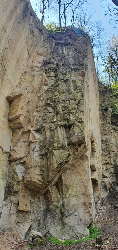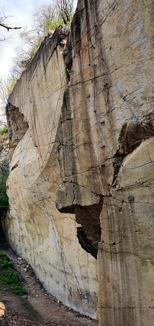 La cantera tiene una altura de 33 m, por la que se han trazado los cables de seguridad a los que conectarte y progresar. Todos los
