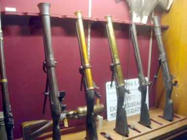 los artilugios de la época: trabucos (foto 14), cascos (foto 15), etc, para