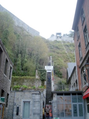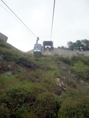 Yo opté por el teleférico, que sube paralelo a las escaleras, así que las vistas