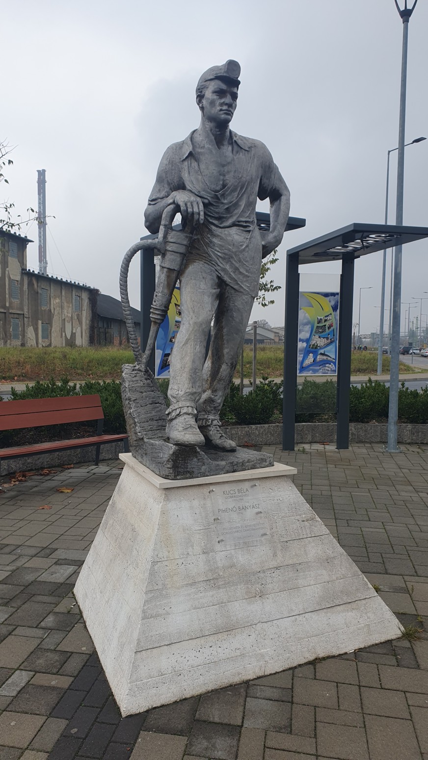una estatua de un minero descansando en homenaje al pasado
