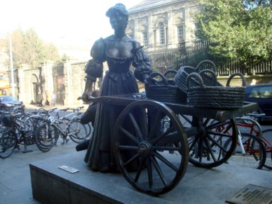 estatua de Molly Mallone en recuerdo a una vendedora ambulante de día y que por