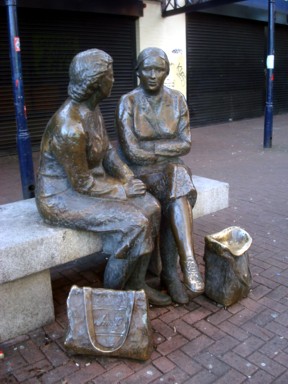 Hay más esculturas, desde simplemente de amigas charlando en un banco después de