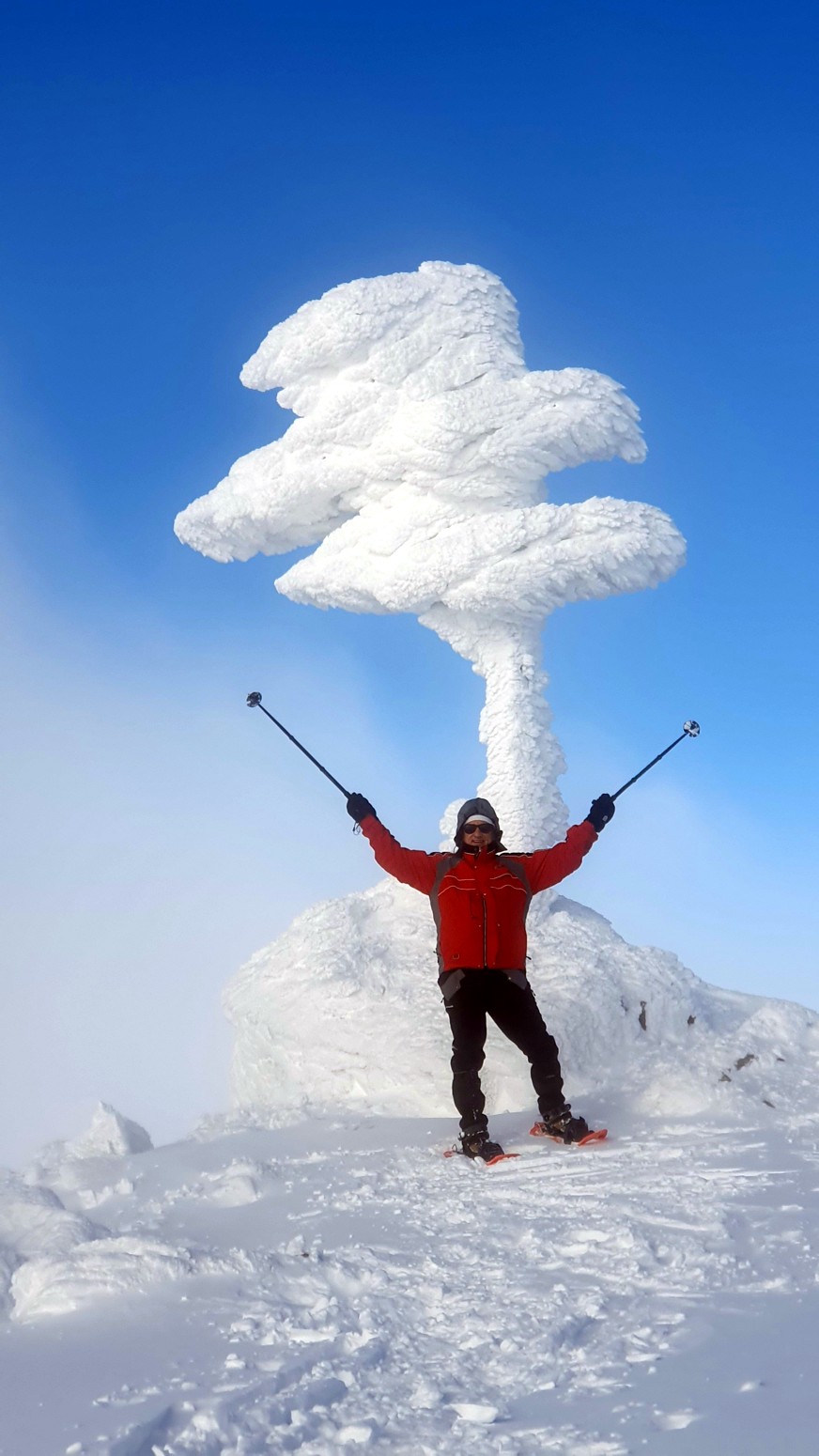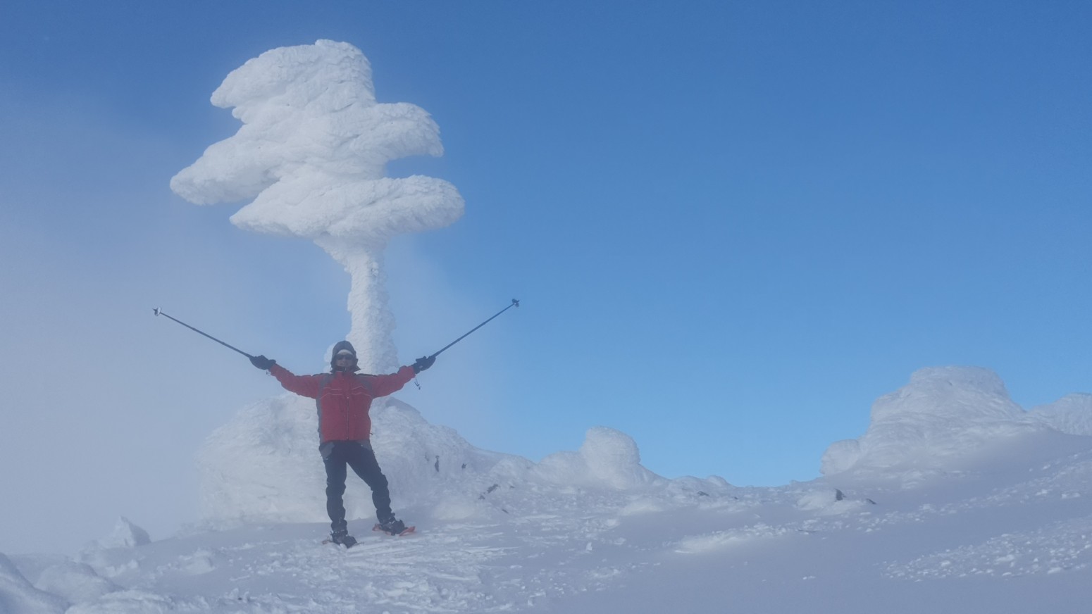 nuestras raquetas y hacemos pico sin dificultad y solos antes de que empiezan a llegar esquiadores de montaña