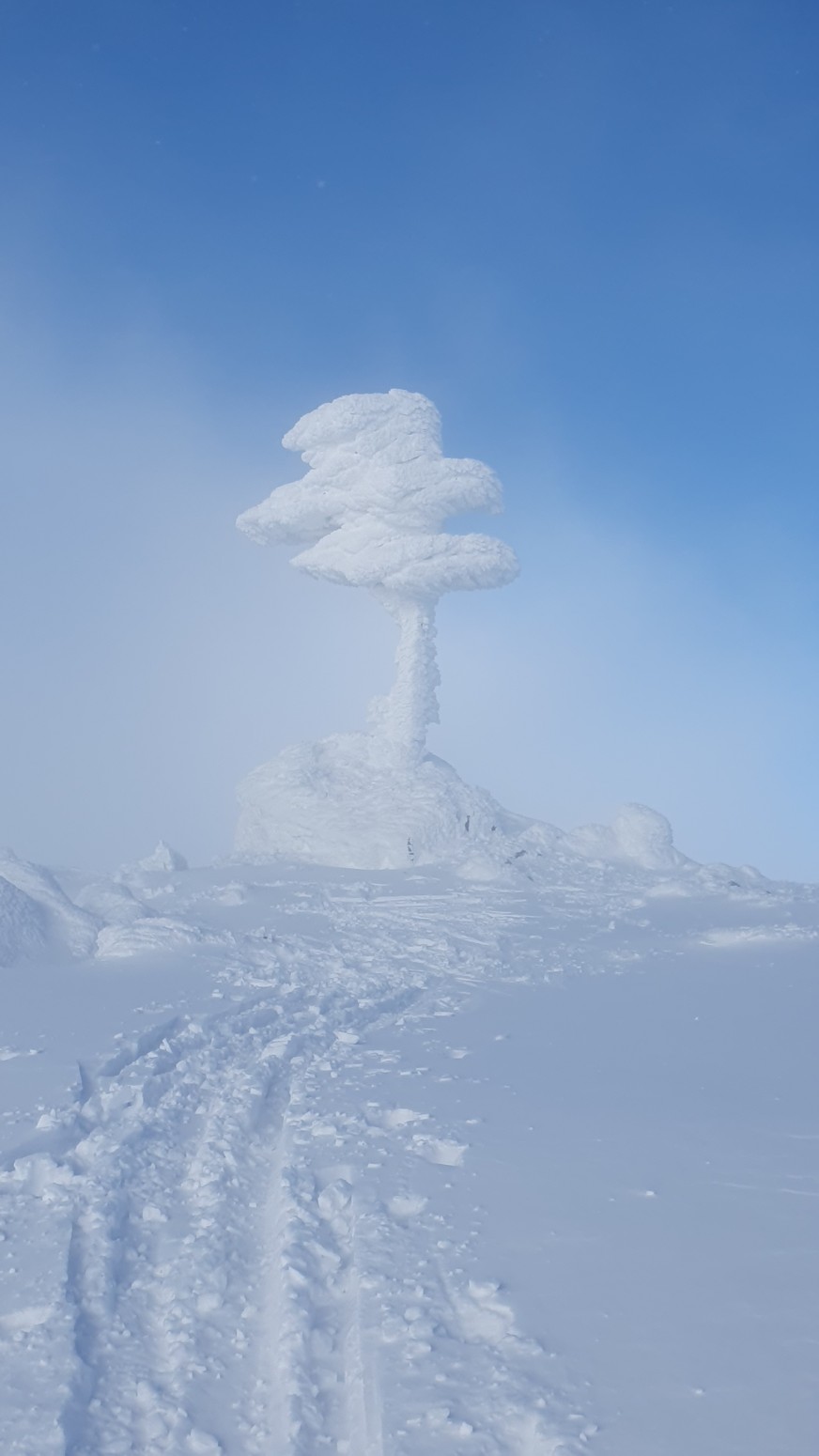 Abajo en el parking nieva, ni siquiera pudimos llegar a el dejando el coche 1 km antes porque