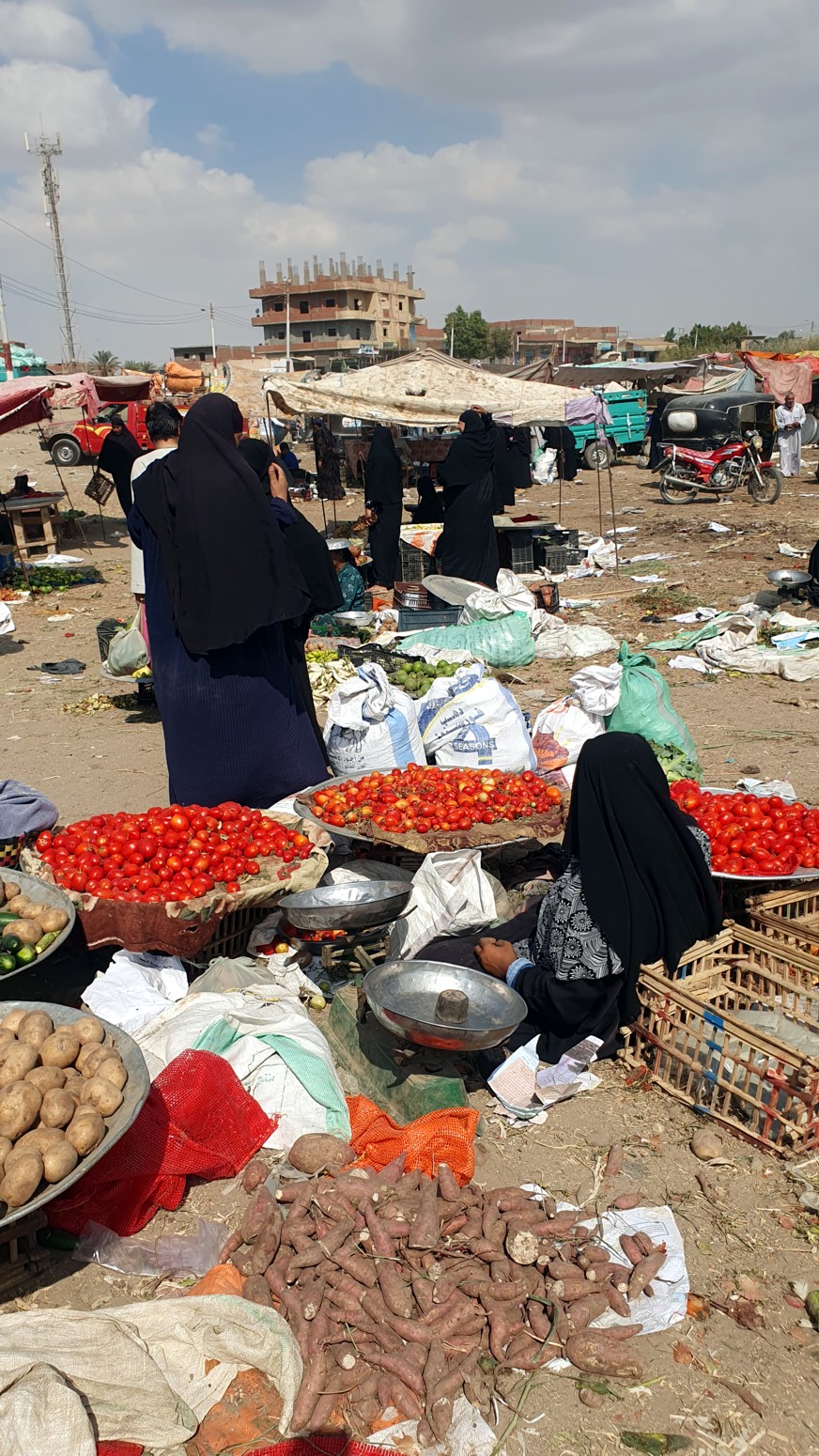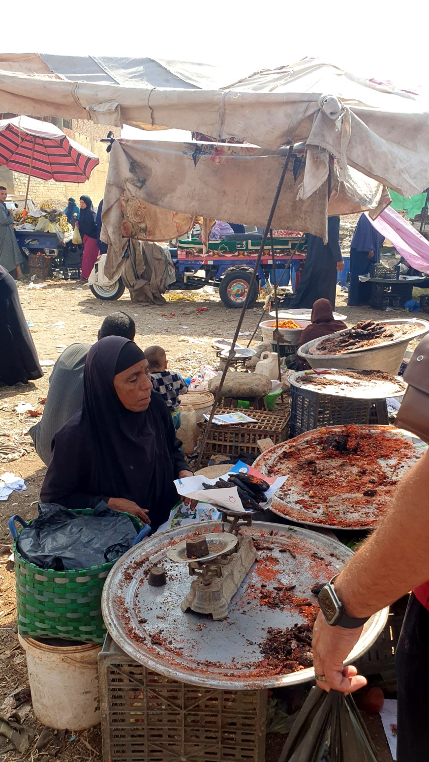 Nosotros llegando a El Fayoum, primero pasamos por su ajetreado mercado para
