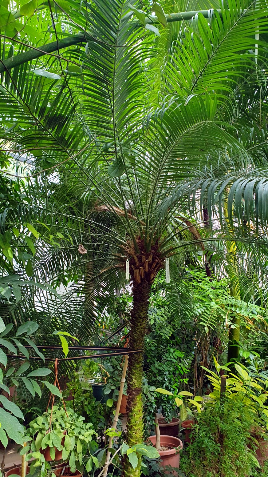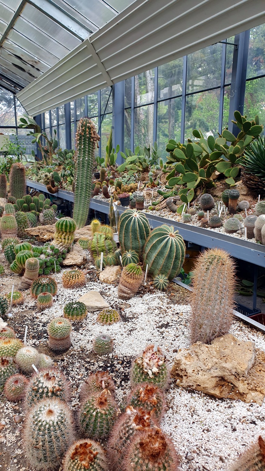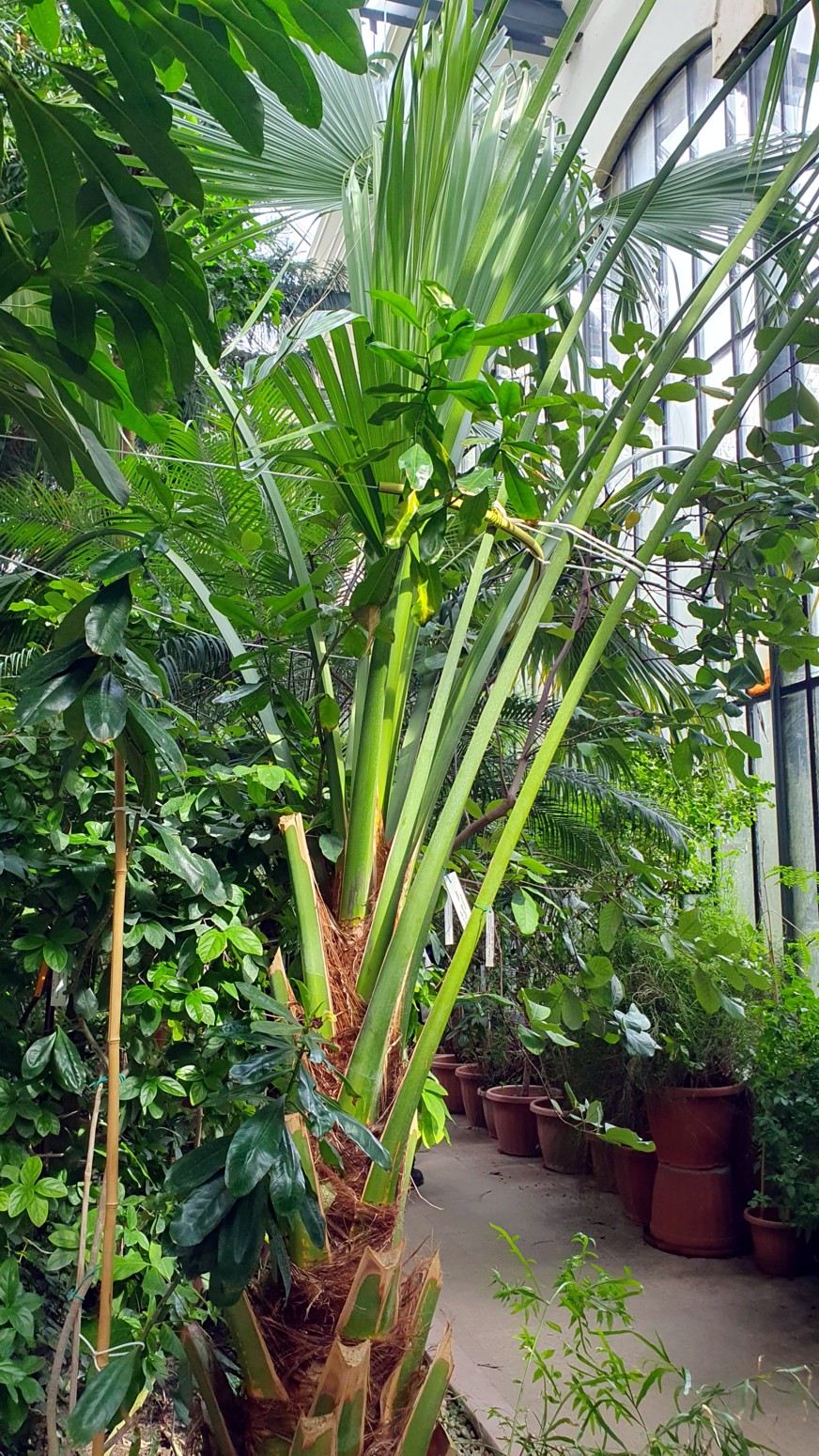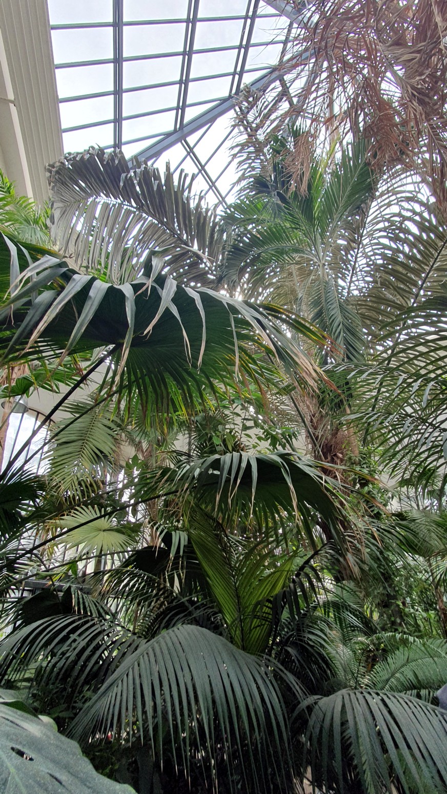 palmas de aire monumental que fue construida en el siglo pasado y renovado en 1966 y el nuevo invernadero de 1984 acogen a plantas tropicales y subtropicales.