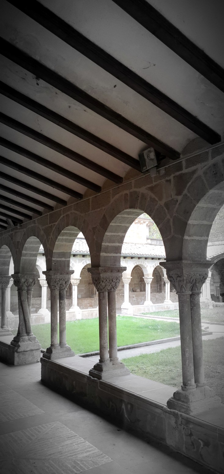 conjuntos de mayor riqueza escultórica del románico navarro. No hay que pasar por alto un capricho excepcional de una de las crujías de este claustro, que se repite en El Burgo