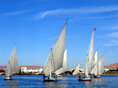 navegar en faluca, pues Assuan es el lugar ideal, hay tantas que puede parecer que os
