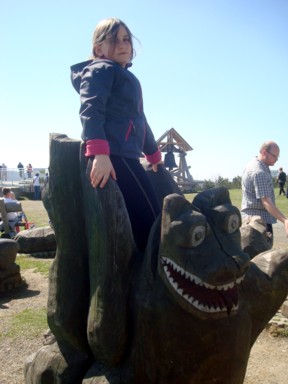 algunos muñecos tallados en madera para que los niños se puedan subir a ellos