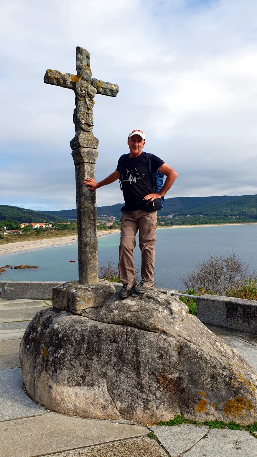 Fisterra por el barrio de San Roque y se pasa junto a la cruz de Baixar, un crucero de granito del XVI.
