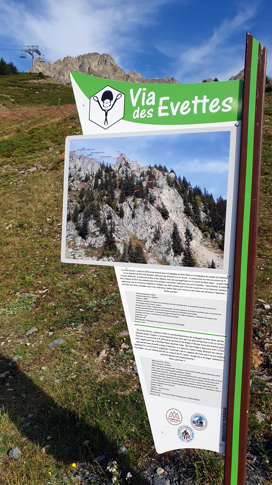 La vía se puede dividir en dos partes: Primera parte: Vía ferrata de las Évettes.-