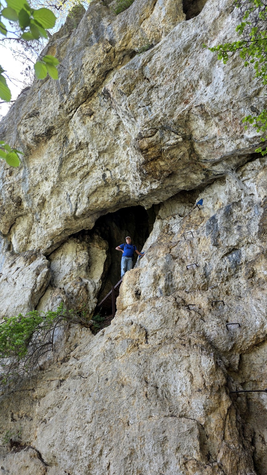 con una escalera de acero. Después de salir de la chimenea, el sendero del bosque sigue hasta la cima del Hohe Wand. La