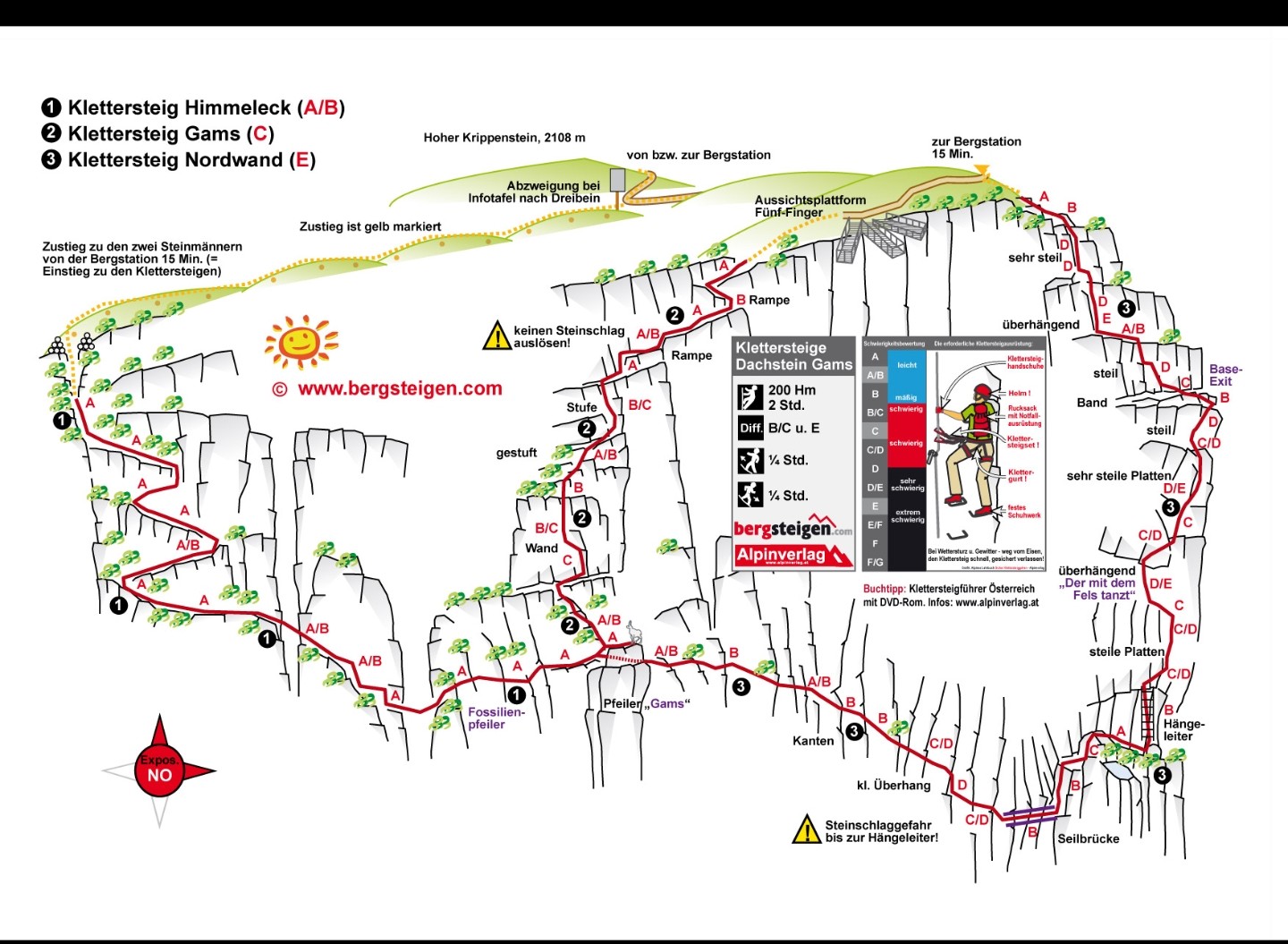 indican "Dachstein Gams o Gams Klettersteig" y donde llegaremos en unos 20