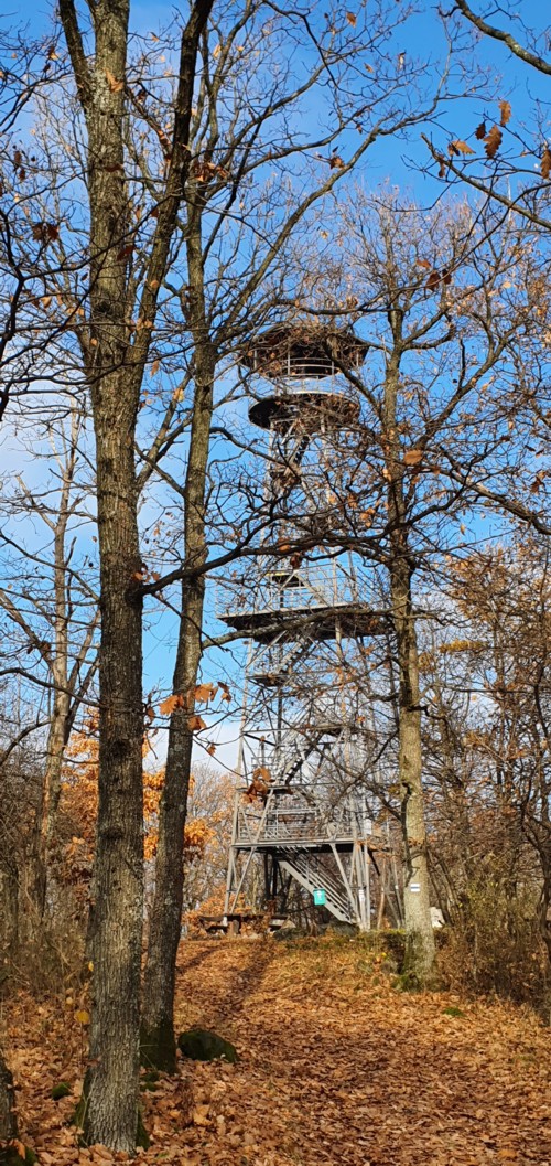 una torre de observación con buenas vistas siendo visible incluso el castillo de Holloko en la distancia.
